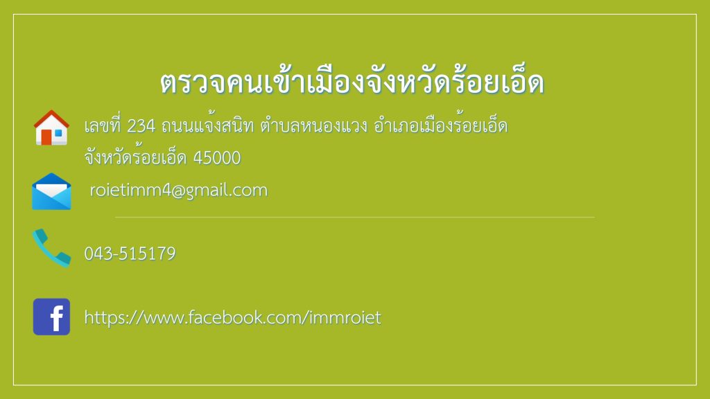 เลขที่ 234 ถนนแจ้งสนิท ตำบลหนองแวง อำเภอเมืองร้อยเอ็ด, จังหวัดร้อยเอ็ด 45000
